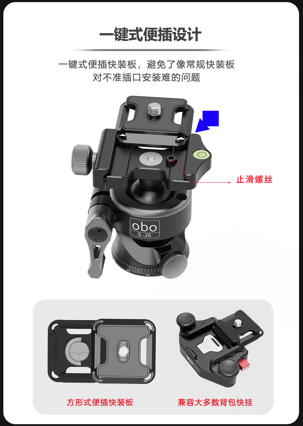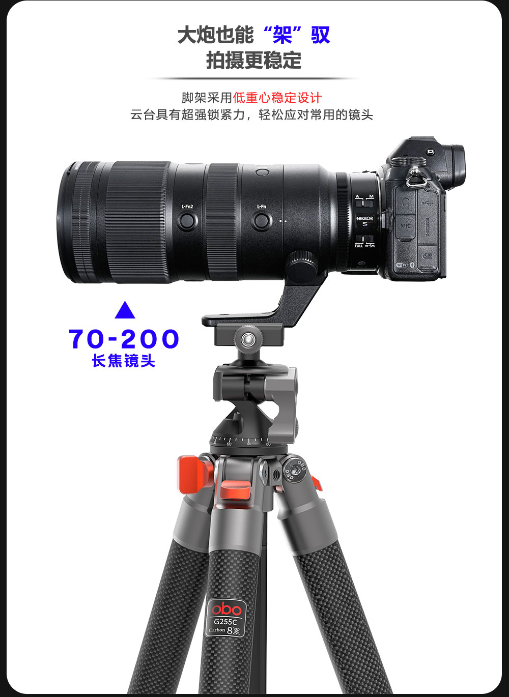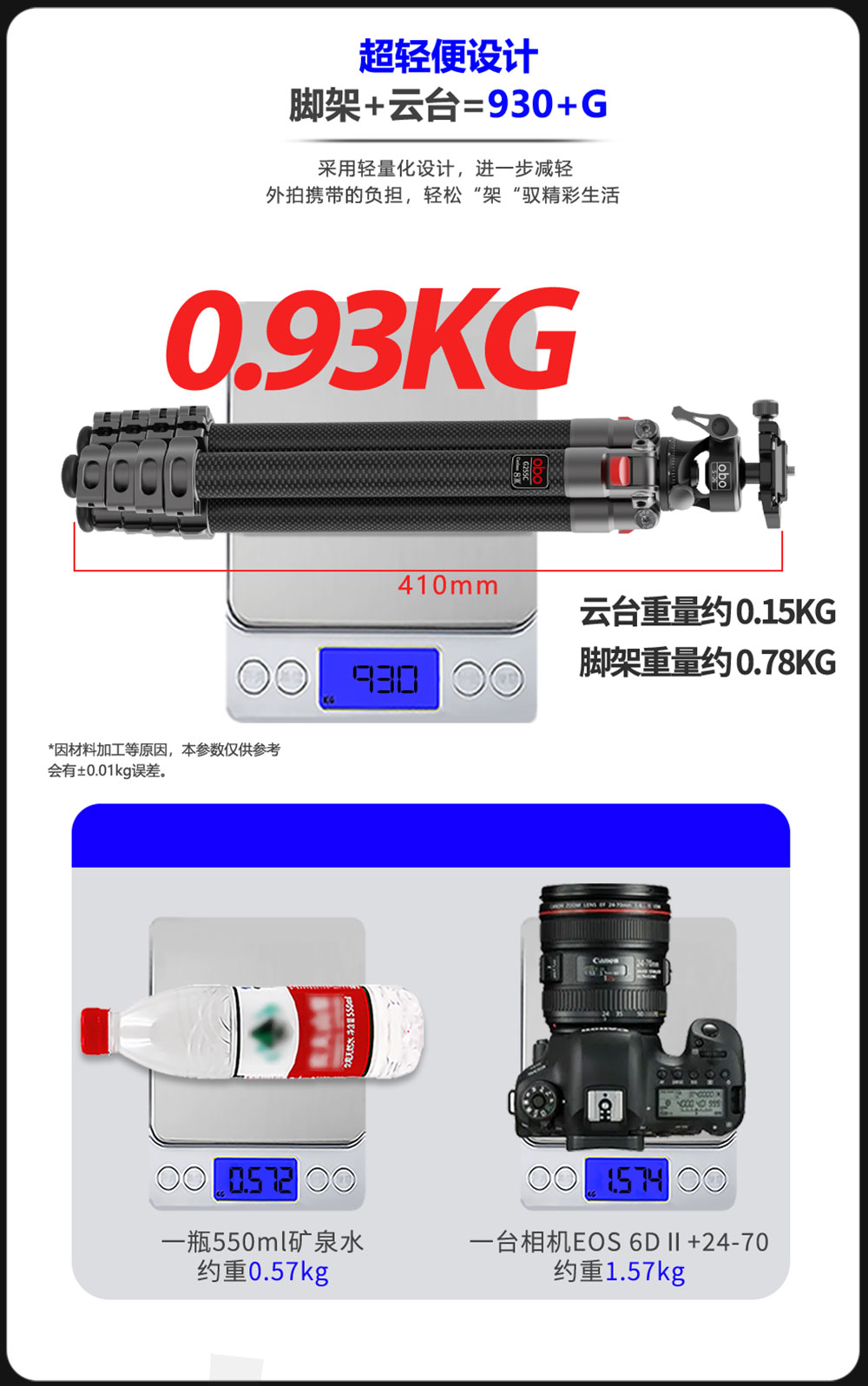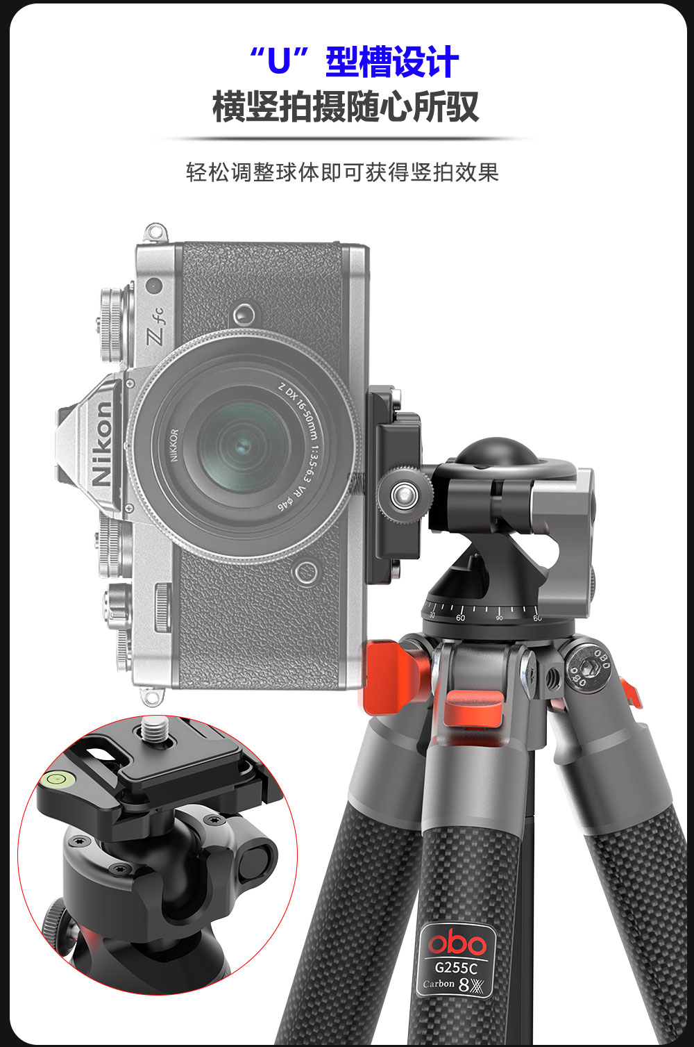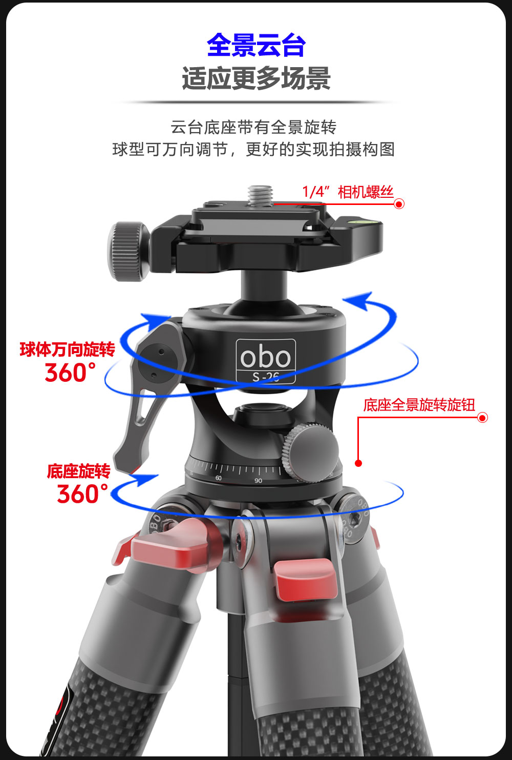 由3K碳纤维制作而成,内锁设计,托盘螺丝1/4"转3/8"翻转螺丝。中轴部分采用三角凹面及长短中轴一体式的设计风格,减小收纳空间。可在拍摄过程中,完成短中轴的拆卸和安装。三角座部分减重孔设计且结构紧凑,双1/4”外部接口,轻松满足多机位拍摄的需求,也可外接补光,录音,魔术手等设备。三个档位调节带有自动回弹系统,全新扳扣锁紧系统,锁紧力强,稳定性好,重量轻,操作便携快速。